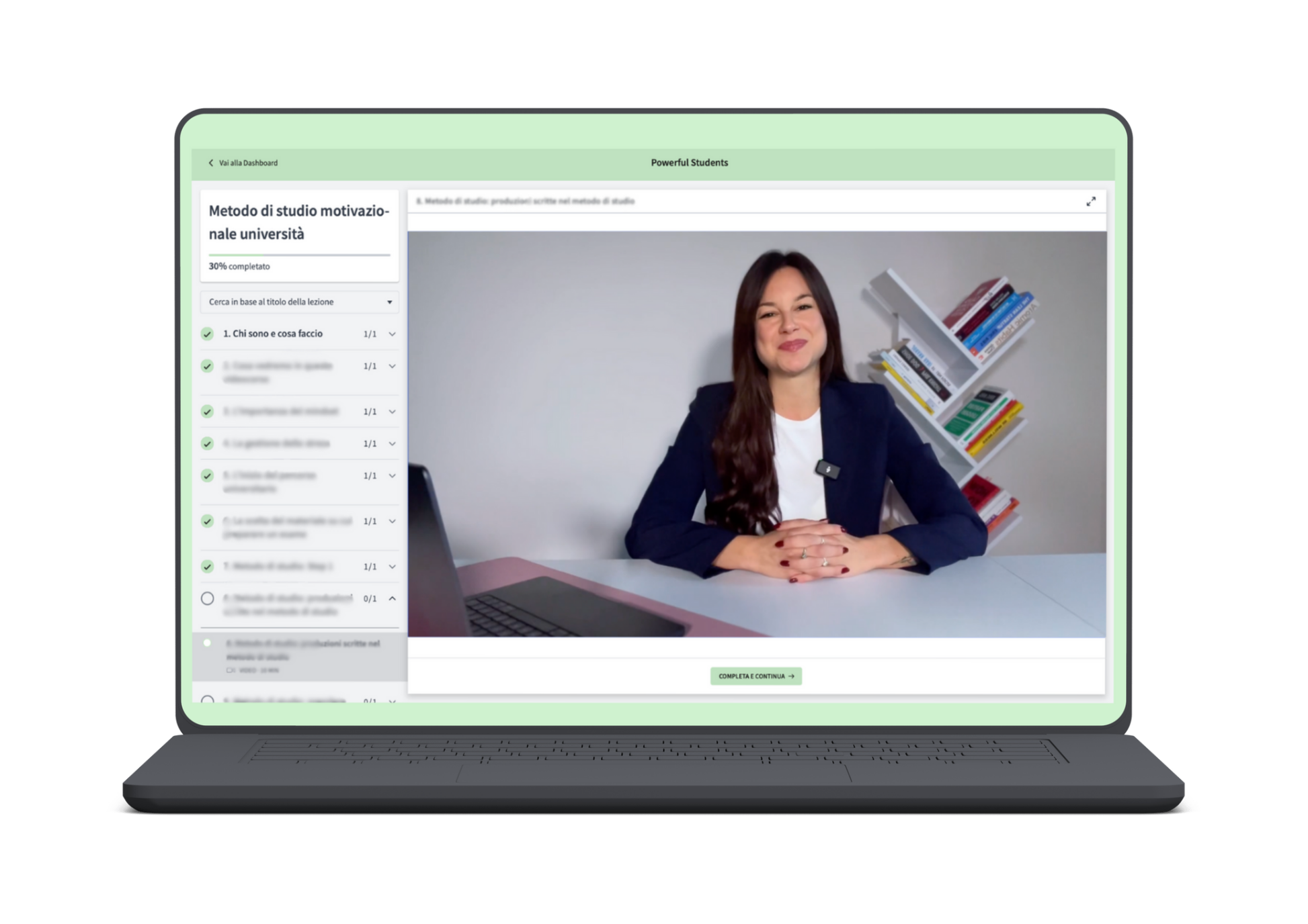 Una volta acquistato il corso potrai rivedere le lezioni quante volte vuoi, in qualsiasi momento, per sempre. Molti dei nostri studenti si riguardano alcune lezioni nei momenti di sconforto perché li aiutano a ritrovare la carica nei momenti più difficili.