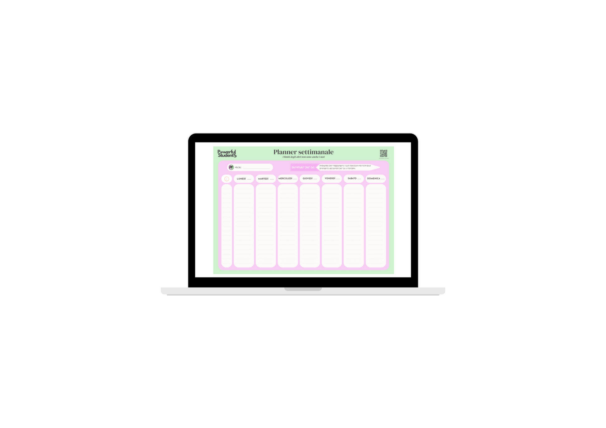 Includono: 1) il Planner Giornaliero per organizzare lo studio quotidiano con parti motivazionali; 2) il Planner Sessione Esami per pianificare strategicamente l’intera sessione; 3) il File per il calcolo della media; 4) 3 video tutorial esplicativi dell’utilizzo dei planner e del File Calcolo Media dei Voti; 5) 3 PDF esplicativi del planner e del File Calcolo Media dei Voti.